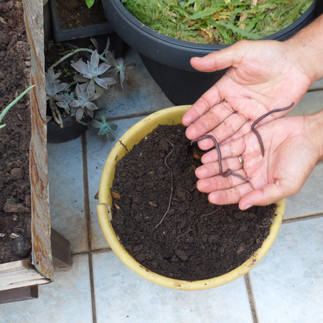 Assim, as minhocas são importantes trabalhadoras no sistema da composteira. Elas reviram o solo, quebram e transformam o resíduo orgânico, liberam nutrientes e oxigenam o sistema.